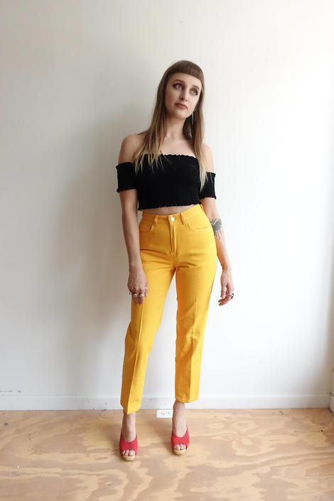 Vintage 90 S Dkny Yellow Cigarette Pants 1990s Donna Karan Designer Jeans High Waisted Size 26 4