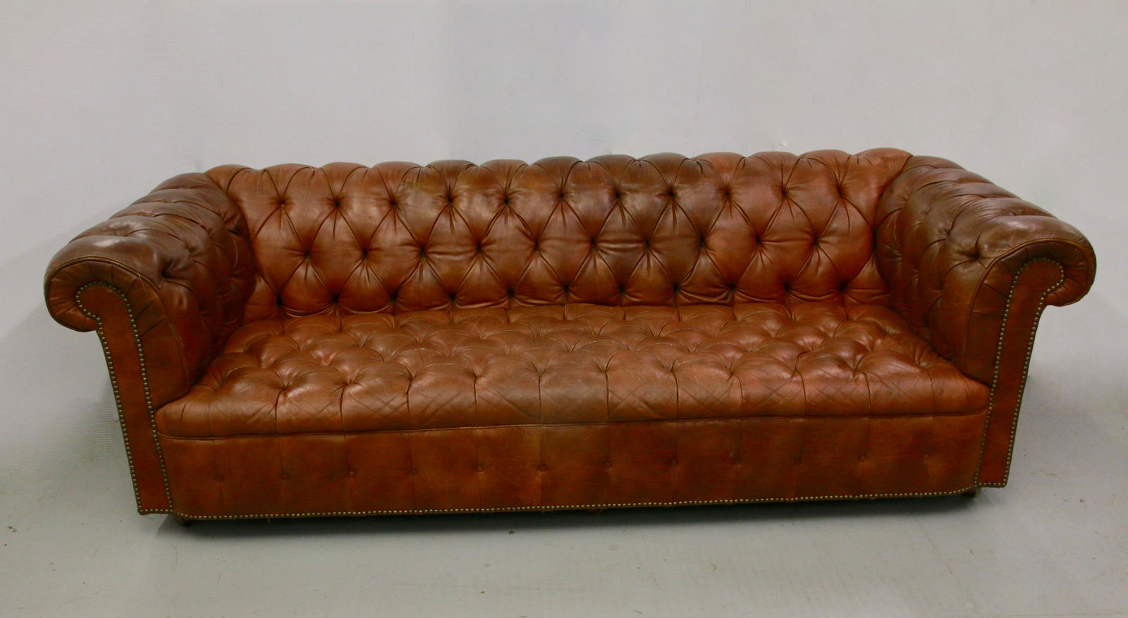 Superior Orange Brown Leather 3 Seater Chesterfield Sofa