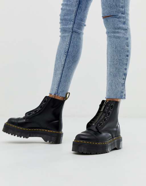 Dr Martens Sinclair Black Leather Zip Chunky Flatform Boots