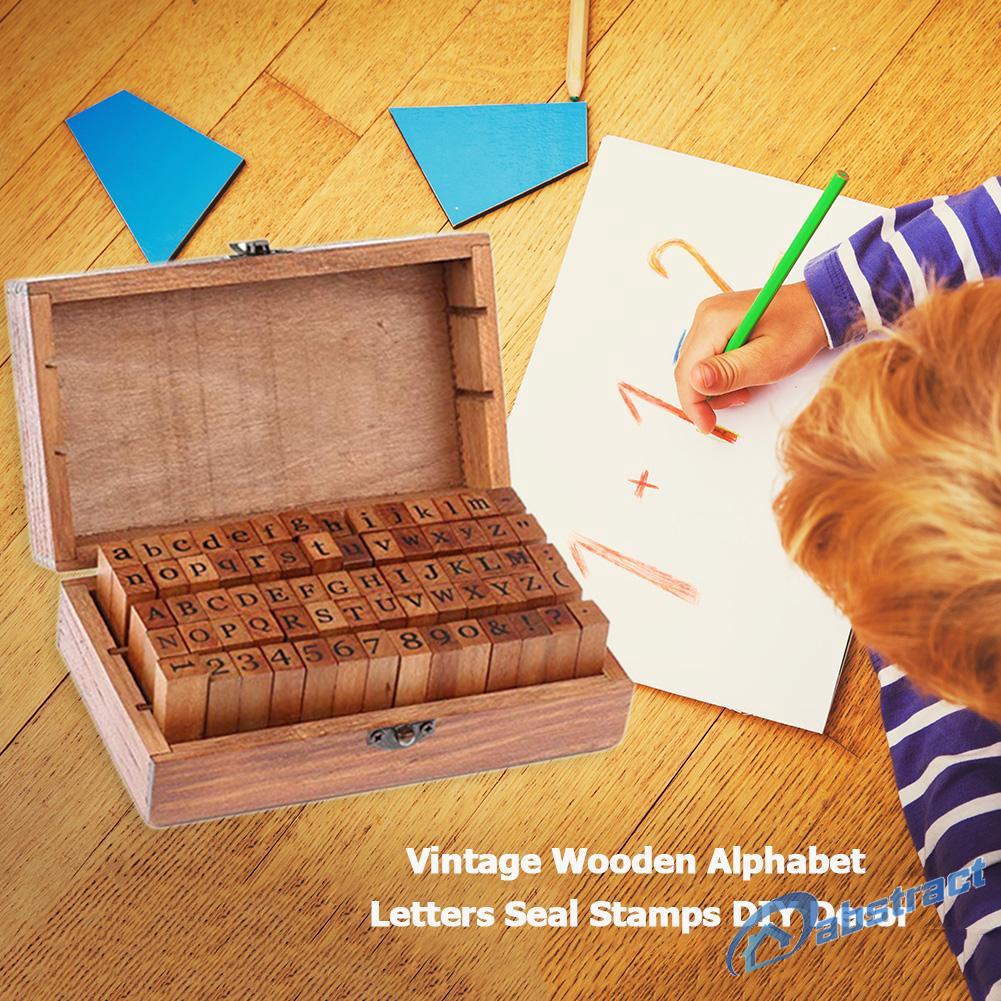 Ab 70pcs Set Stempel Alfabet Huruf Bahan Kayu Gaya Vintage Untuk Dekorasi Diy
