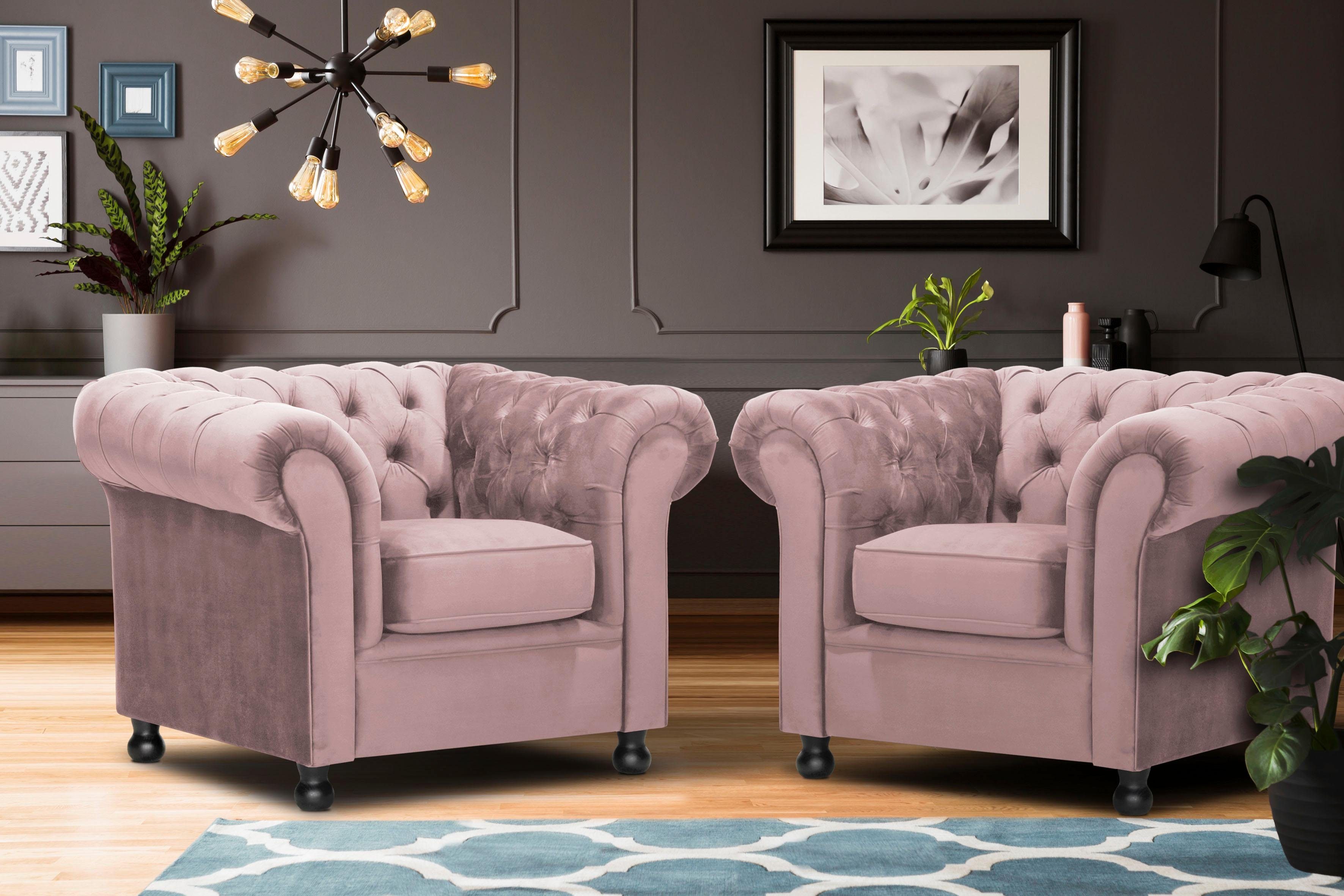 Rosa Textil Chesterfield Sessel Online Kaufen Mobel